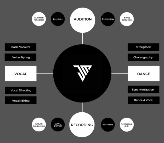 04Incubation Courseインキュベーションコース韓国の練習生のようにデビューを目指すマインドでのコース。歌やダンスだけでなく、自己管理、練習コンサルティング、発表会など、契約後も簡単に環境に適応できるようにサポートします。